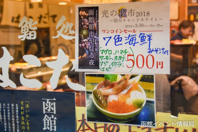 函館朝市が年に一度だけ「夜市」になるイベント「光の夜市」が2018年2月10日(土)に開催されました。