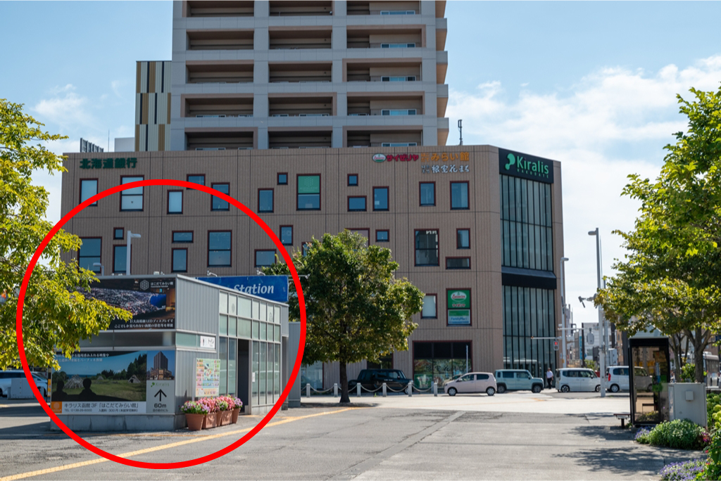 函館駅側の出入り口から入ると、数メートル先の左手にあります。