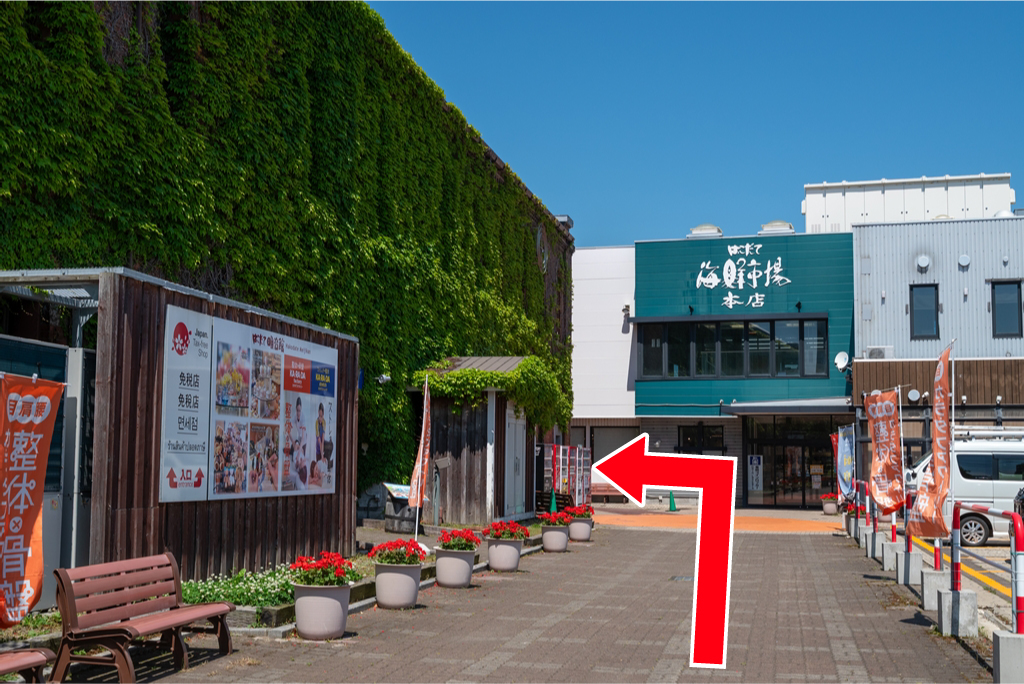 レンガ造りの土産物店「はこだて明治館」の中にもコインロッカーがあります。ここでは、店内を通らずにコインロッカーに直行できるルートを紹介します。