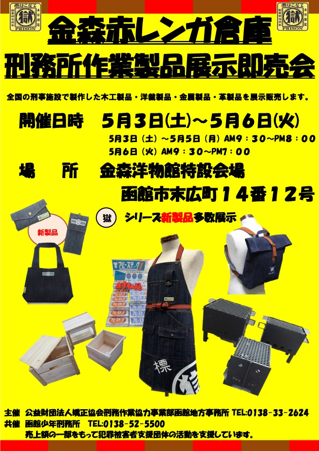 函館少年刑務所で作られている「マル獄シリーズ」をはじめ、全国の刑務所で作られた刑務作業製品を展示・販売するイベント。