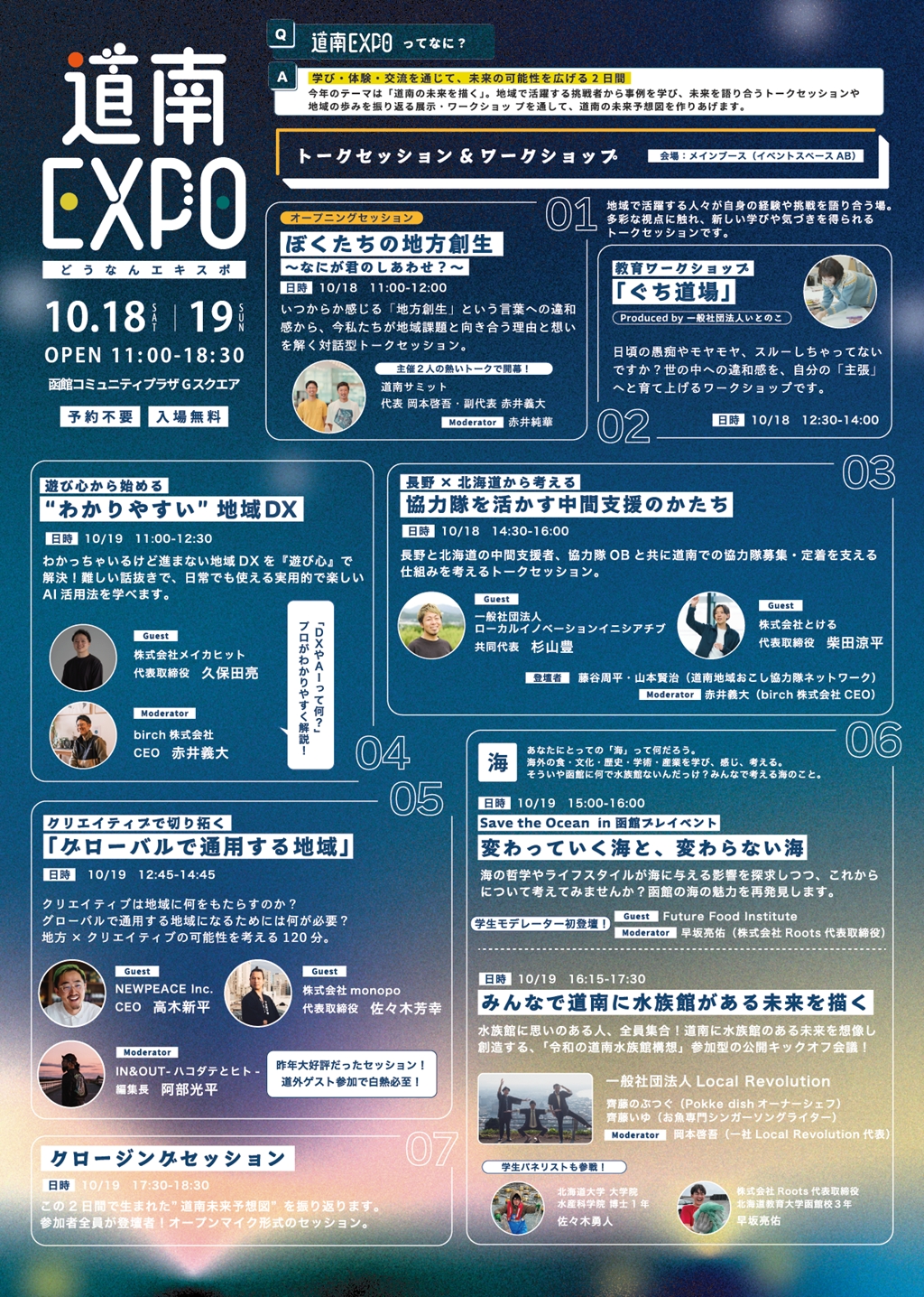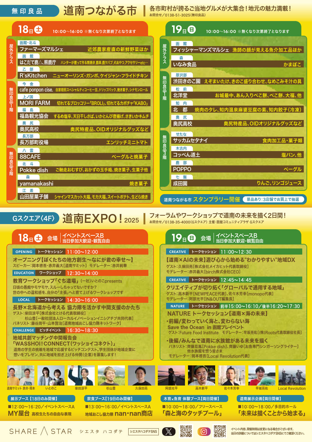 道南18市町村の産品が集るマルシェ「道南つながる市」と、「道南の未来を描く」をテーマにトークセッションを繰り広げる「道南EXPO!」を同時開催。