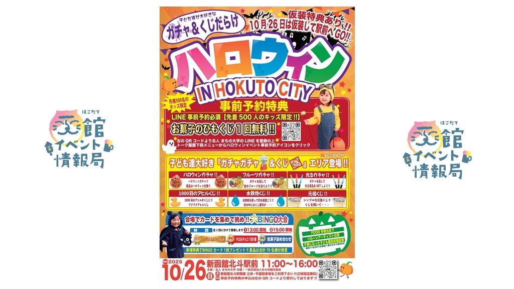 ▼函館イベント情報局は、イベント主催者様からの情報提供(告知依頼)をお待ちしています。「情報提供フォーム」からお送りください。