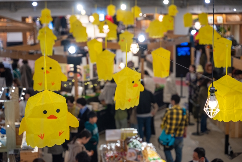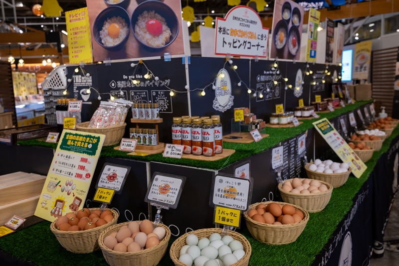 初日ということで会場はかなりのお客さん。中央吹抜けマルシェ一帯がたまご色(ひよこ色?)に染まり、あっちもこっちも卵!という光景にテンションが上がります。