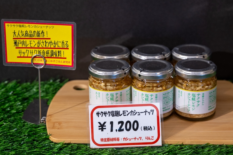 研究所オリジナルの公式醤油やマヨネーズ、七味、さらにはトリュフ塩や「サクサク塩麹レモンカシューナッッ」というなんだか要素が多い謎調味料まで。