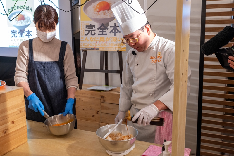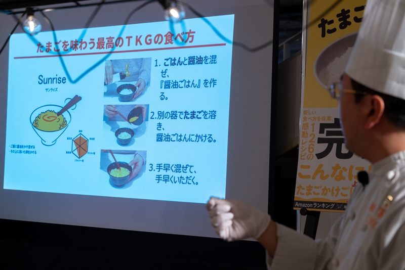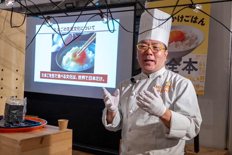 初日と4日(火)の2日間限定で、日本たまごかけごはん研究所代表理事の上野貴史さんによる出版記念イベント『たまごかけごはんの向こう側を伝授します!』が開催されていました。