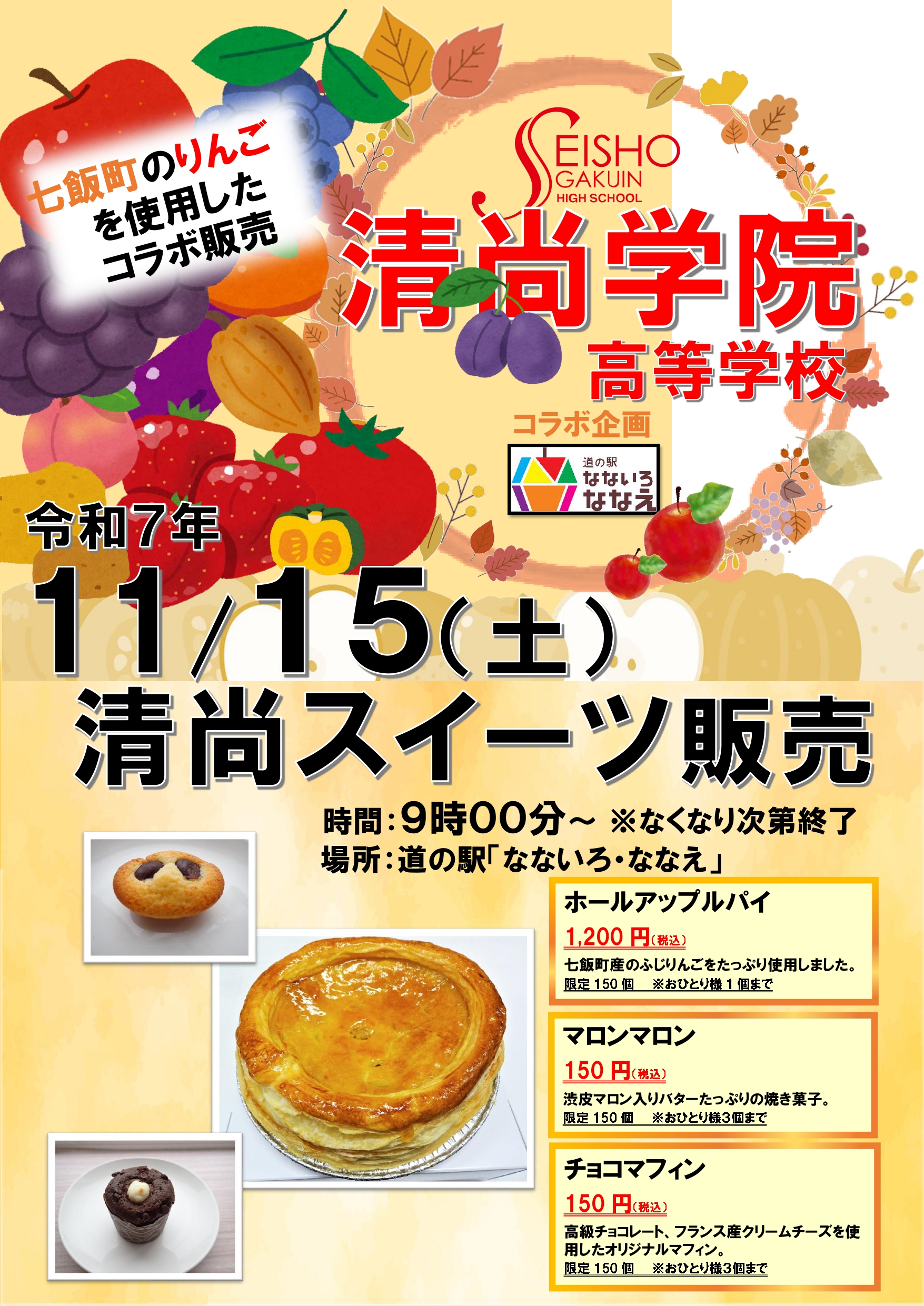 清尚学院高等学校の生徒が七飯町のりんごを使って作ったスイーツを販売。