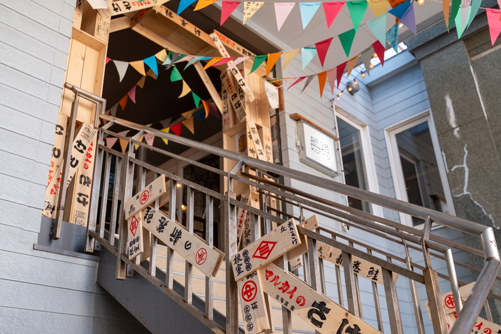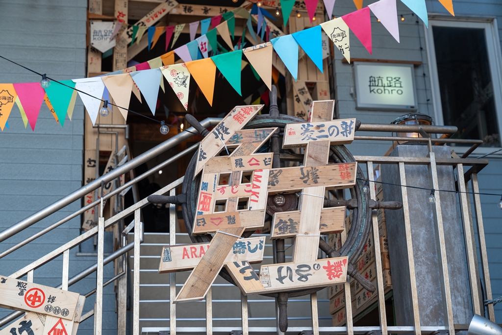 にしても、建物の外観からして、鮭箱で作った矢印やらオブジェやら門やらに埋め尽くされていて、いい意味でヤバい雰囲気が漂ってるわけです。大好きがあふれちゃっている感。
