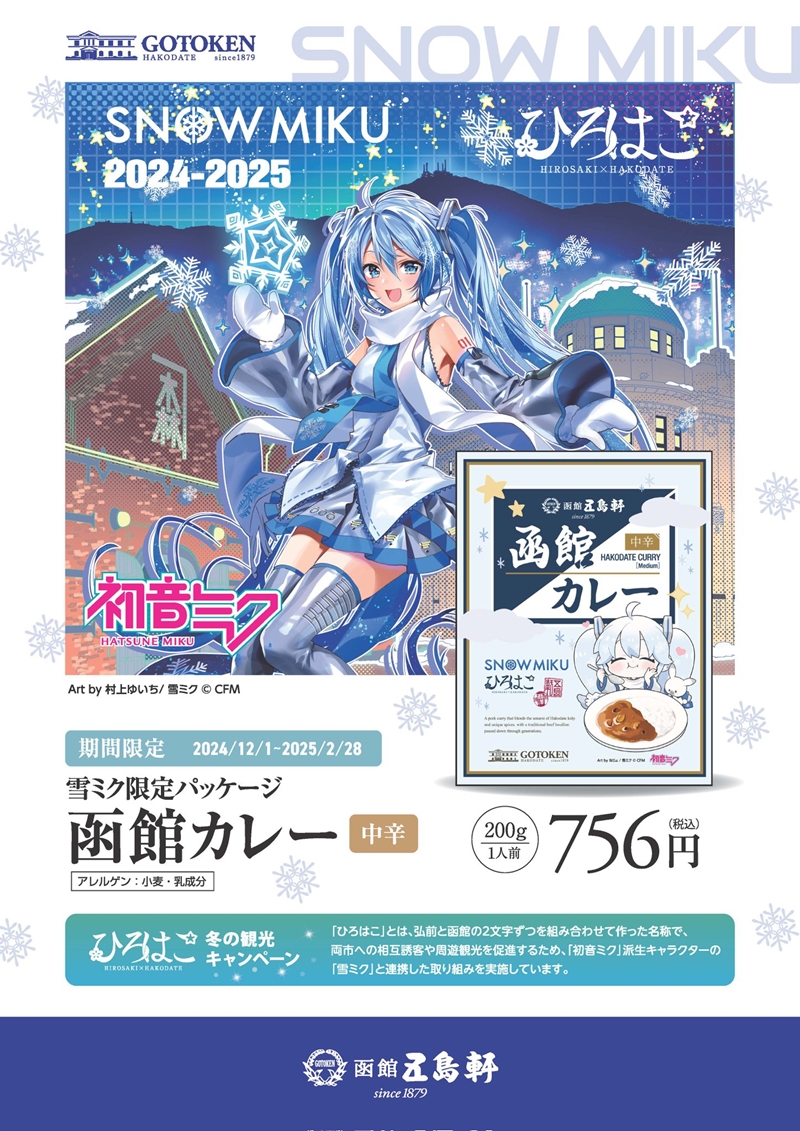 五島軒の大人気商品「函館カレー」の雪ミク限定パッケージを期間限定で販売。