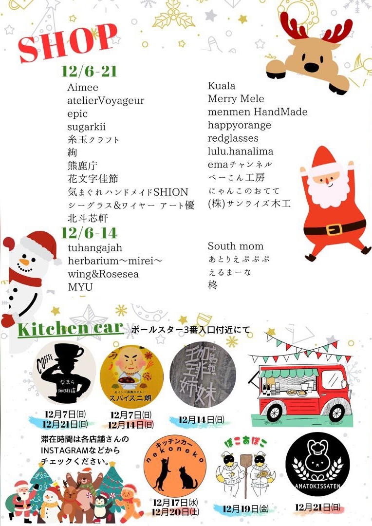 約2週間のポップアップストアがポールスターに出店。道南のハンドメイド作家の作品を中心に販売する。週末など一部の日には屋外にキッチンカーが出店する。