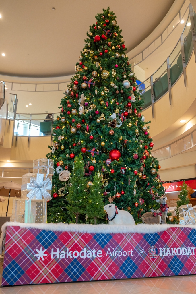 ツリー横にはポップアップのブース。空港を訪れた人の目に留まりやすい場所。