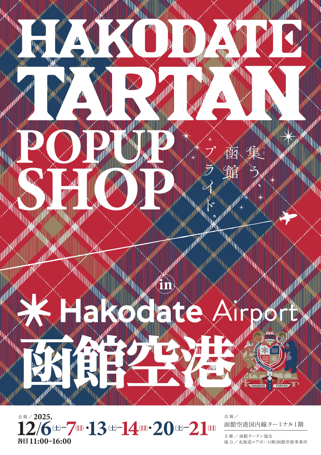 函館タータンポップアップはこの後、12月の7日(日)、13日(土)~14日(日)、20日(土)~21日(日)の週末に開催されます。時間は11:00~16:00。