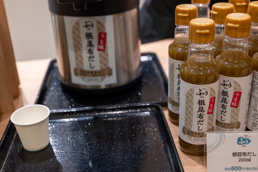 ▲同じく函館産の根昆布を使った「根昆布だし」(液体)