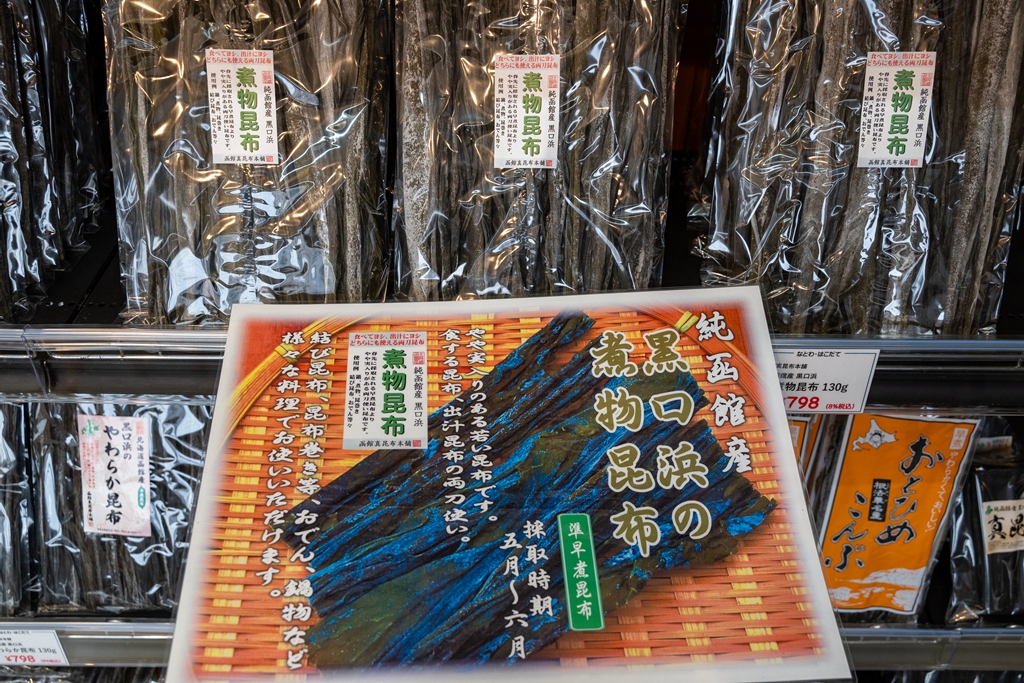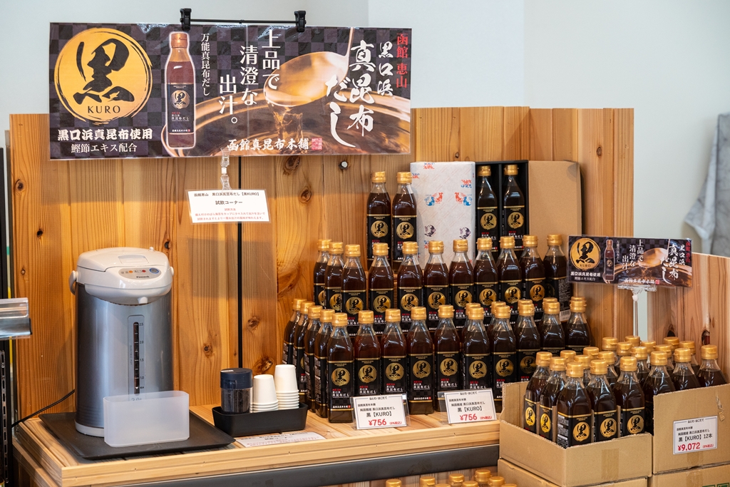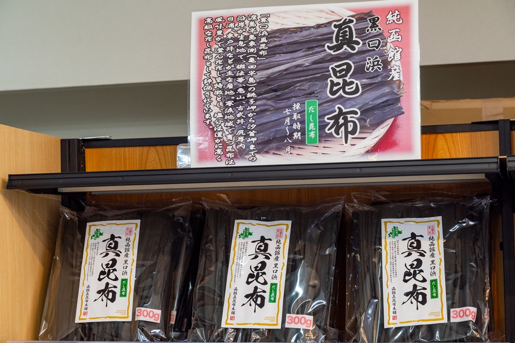 入店してまず目に入るのが、「函館恵山 黒口浜 真昆布だし」。
