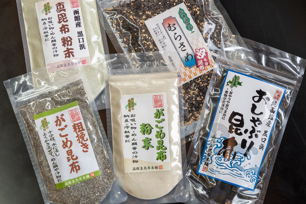 「昆布そのもの」ももちろん豊富にあります。ここにある昆布は基本、函館産の「真昆布」(という品種)。そのなかでも、恵山や椴法華などの海でとれる「黒口浜(くろくちはま)昆布」(という銘柄)。