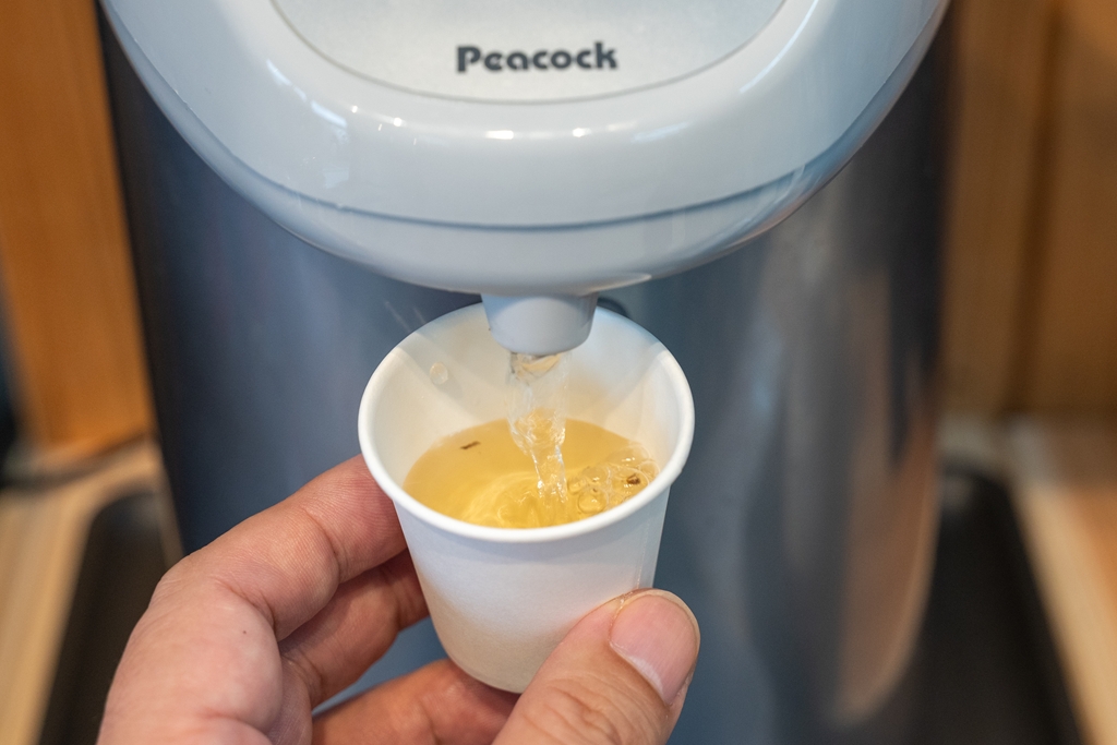 試飲OK。お好みで「ばらのり」を入れ、ポットから注ぐスタイルです。