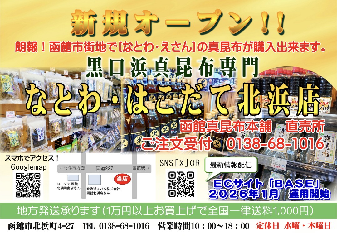 「道の駅なとわ・えさんの昆布が、函館の街なかで買えるようになったよ」