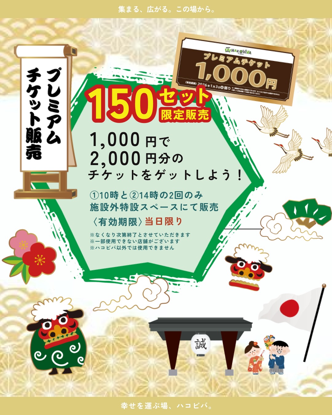 10:00からと14:00からの2回、ハコビバ内で2,000円買い物できるチケットを1,000円で販売する(150セット限定)。