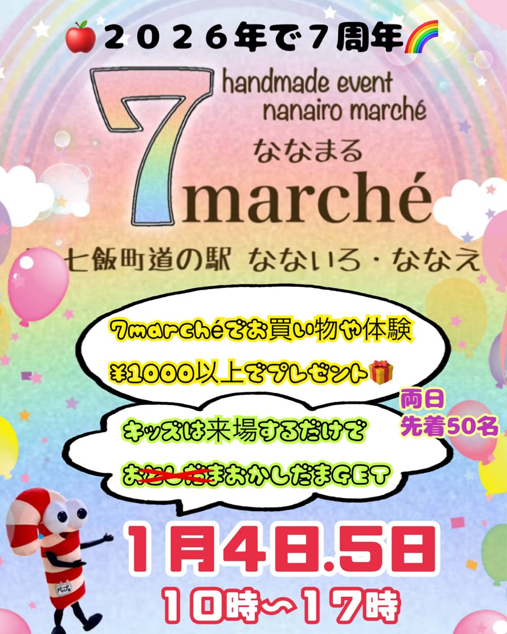 両日とも館内で、ハンドメイド作品やセレクト雑貨の販売、ワークショップなどのイベント「7marché」も開催。