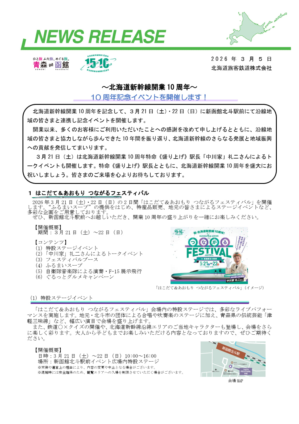 【2026/3/21~22】北海道新幹線10周年イベント「はこだて&あおもり つながるフェスティバル」(北斗市)