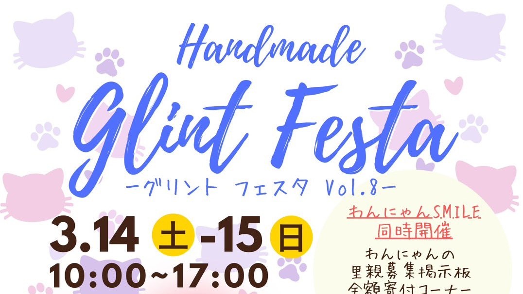 保護犬猫の支援企画「わんにゃんSMILE」として、支援物資の受付や募金箱の設置、里親募集掲示板の設置を行うほか、売上金を全額寄付するチャリティーコーナーも開設する。
