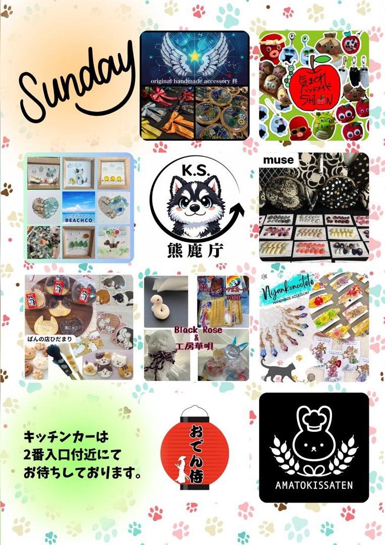 道南で活躍するハンドメイド作家とフード販売、キッチンカーが両日とも20組以上集まるイベント(一部入れ替わりあり)。