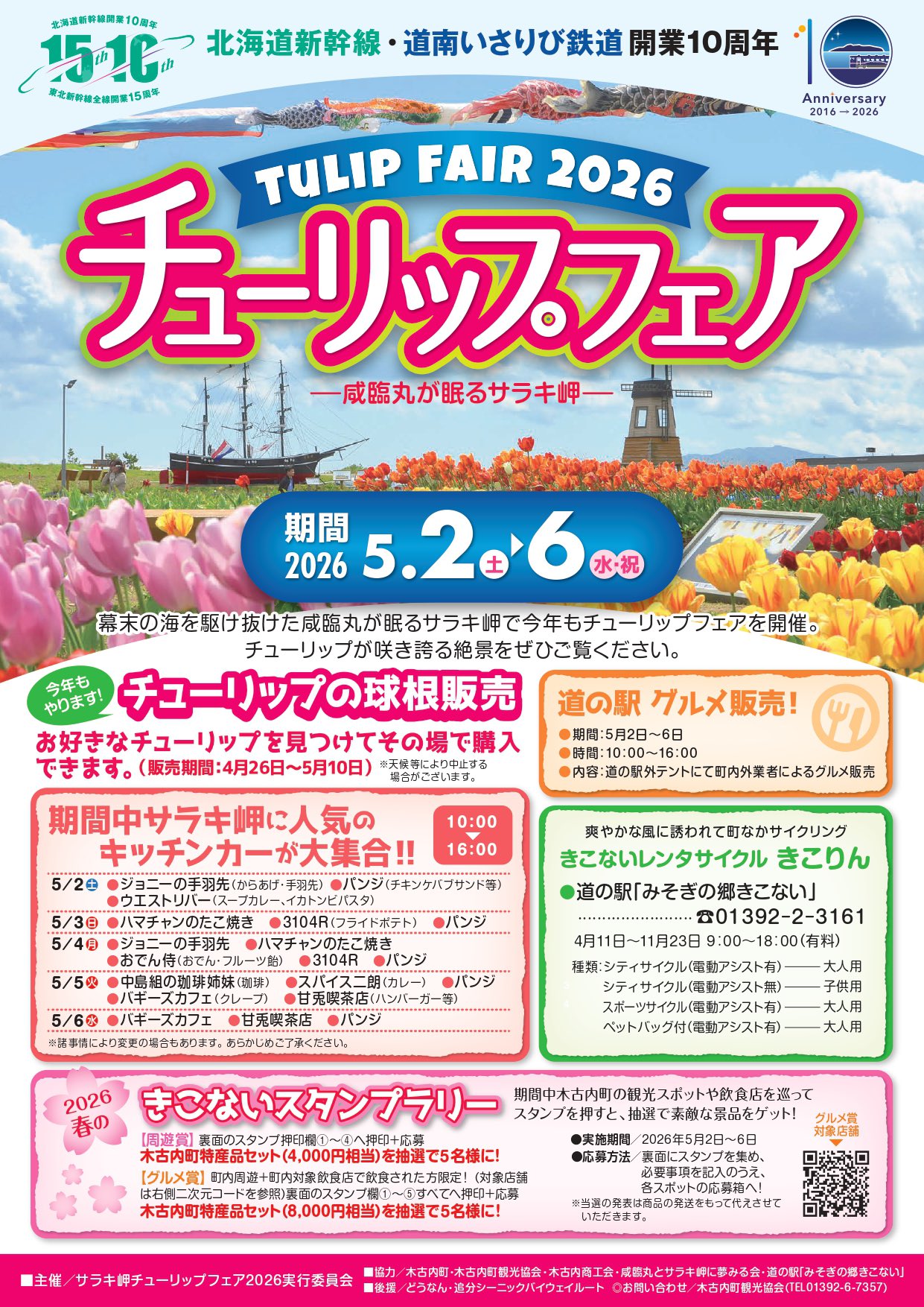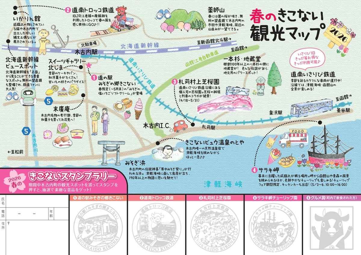 関連企画として、木古内町の観光スポットや飲食店を巡ってスタンプを押すと、抽選で景品が当たる「2026春のきこないスタンプラリー」開催。