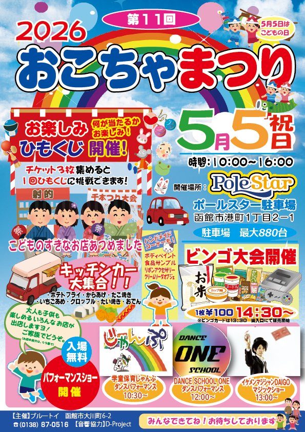 ▼函館イベント情報局は、イベント主催者様からの情報提供(告知依頼)をお待ちしています。「情報提供フォーム」からお送りください。
