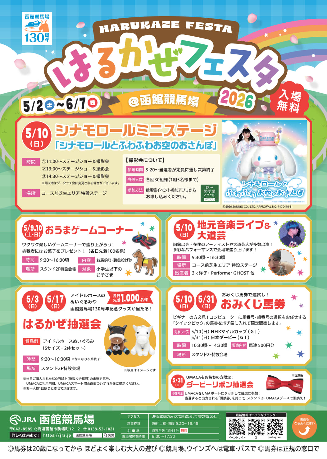 ▼函館イベント情報局は、イベント主催者様からの情報提供(告知依頼)をお待ちしています。「情報提供フォーム」からお送りください。