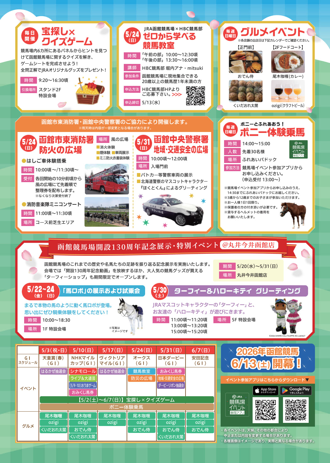 期間中毎日、競馬場内6カ所にあるパネルからヒントを見つけてクイズに挑戦する「宝探し×クイズゲーム」を実施。全問正解でJRAオリジナルグッズがもらえる。