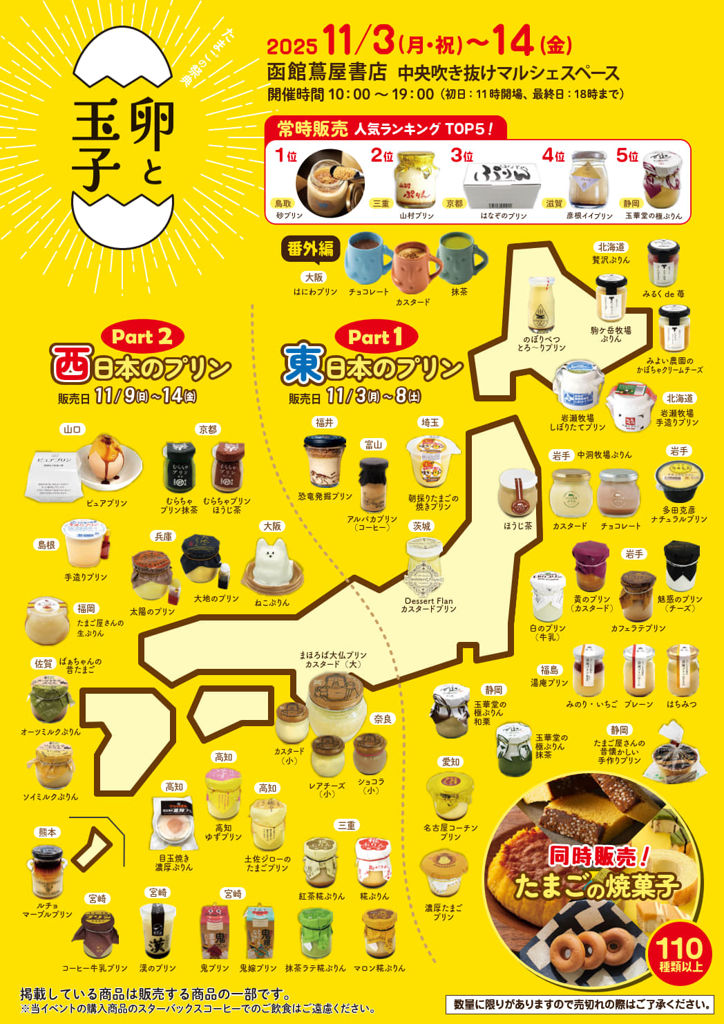 たまご好きはもちろん、プリン好き、スイーツ好きにもたまらないイベント。“たまごの奥深さ”を味わいたい方は、ぜひ函館蔦屋書店へ。